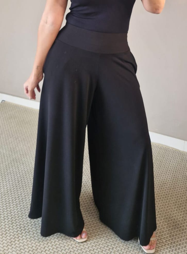 Calça Mega Pantalona, cintura alta, com elastico na cintura na malha Ity e com bolsos