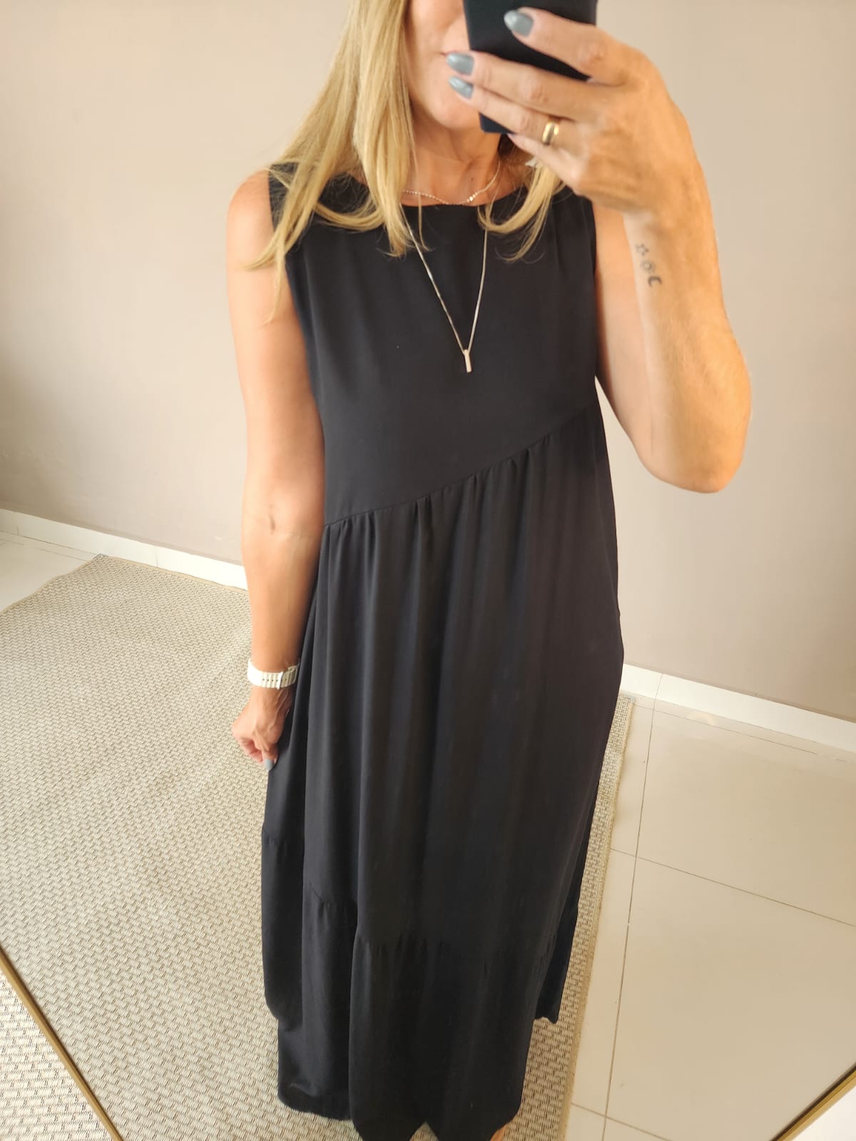 Vestido longo modelo transversal no tecido viscolinho na cor preto